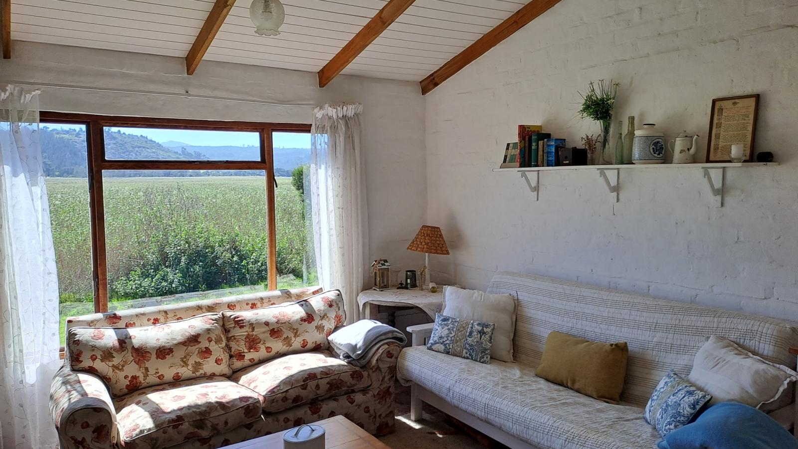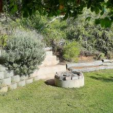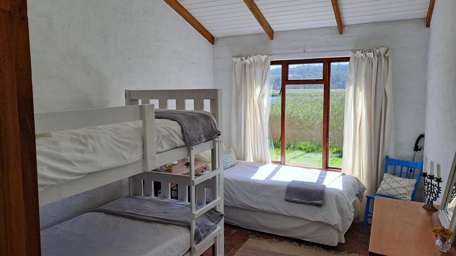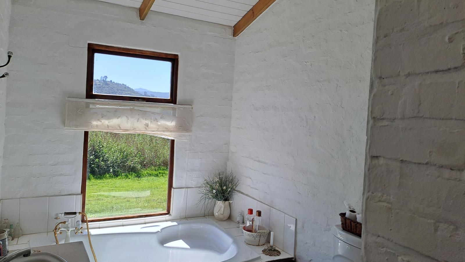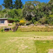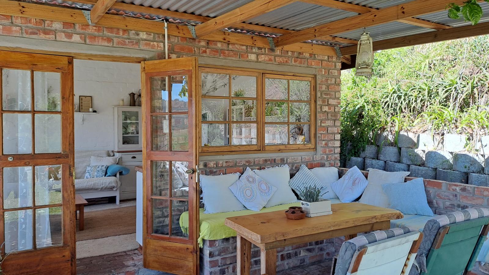 It sleeps 5 people comfortably, has one bathroom with shower and bath, a fully outfitted kitchen with gas stove, microwave and fridge. It also has a lovely outside stoepe and braai area.